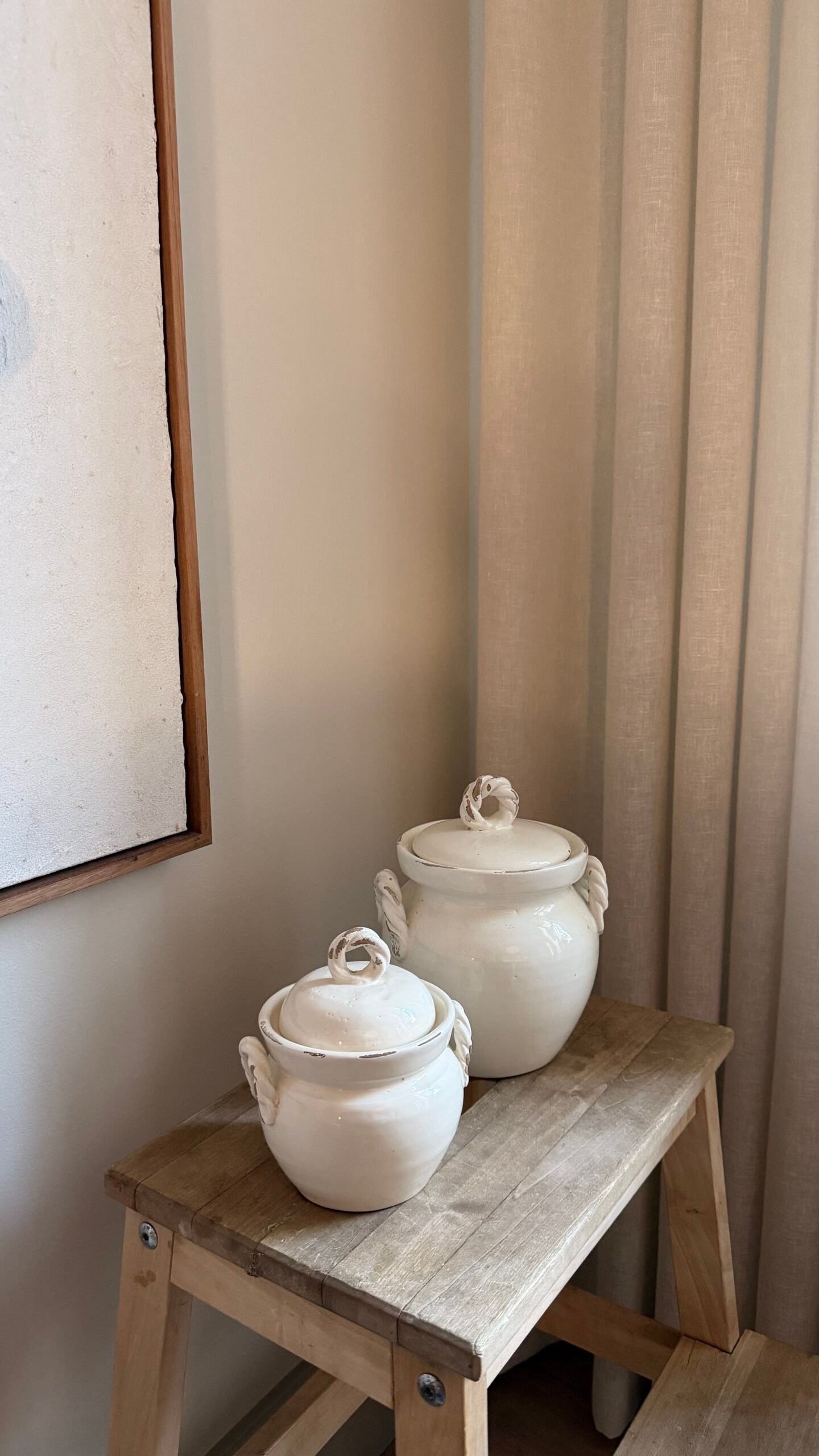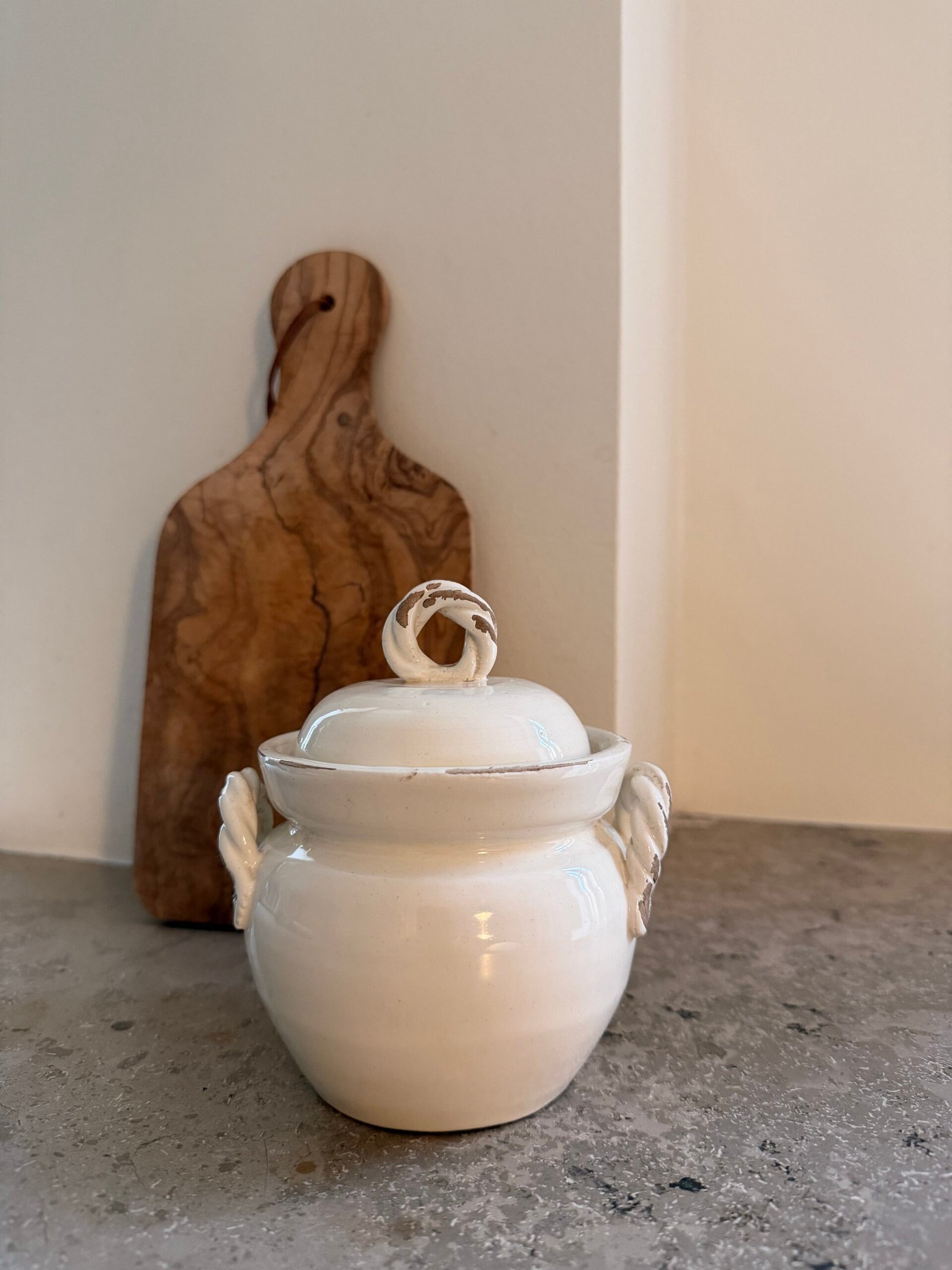 Each jar is hand-shaped and finished with our signature antique effect, available in Antique Crème White and Antique Honey, giving it a warm, timeworn character that celebrates Italian craftsmanship.